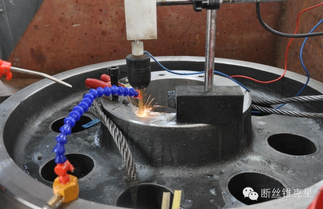 本次加工,信成便攜式火花機采用片狀電極,把斷絲錐中線打穿,一分為二