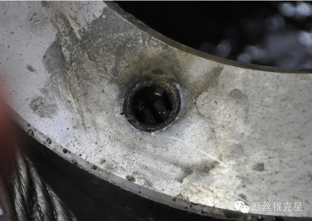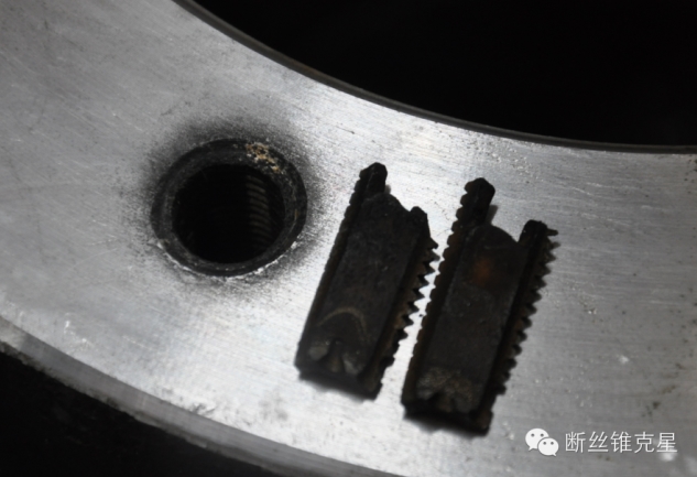 能看到,絲錐中線已經(jīng)被打穿,絲錐松動