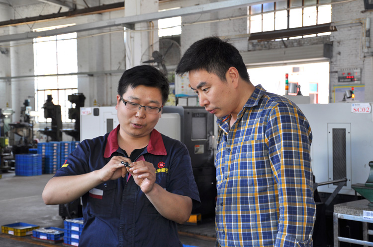 隨后,劉總一行分別參觀了火花機車間和機械加工車間,與火花機車間喬鵬飛和機械加工車間主任馬軍峰進行了技術(shù)交流。在看到機械加工車間自動化機器人時,劉總一行產(chǎn)生了濃厚的興趣,對信成公司通過自動化機器人提升效率表示由衷的贊賞。