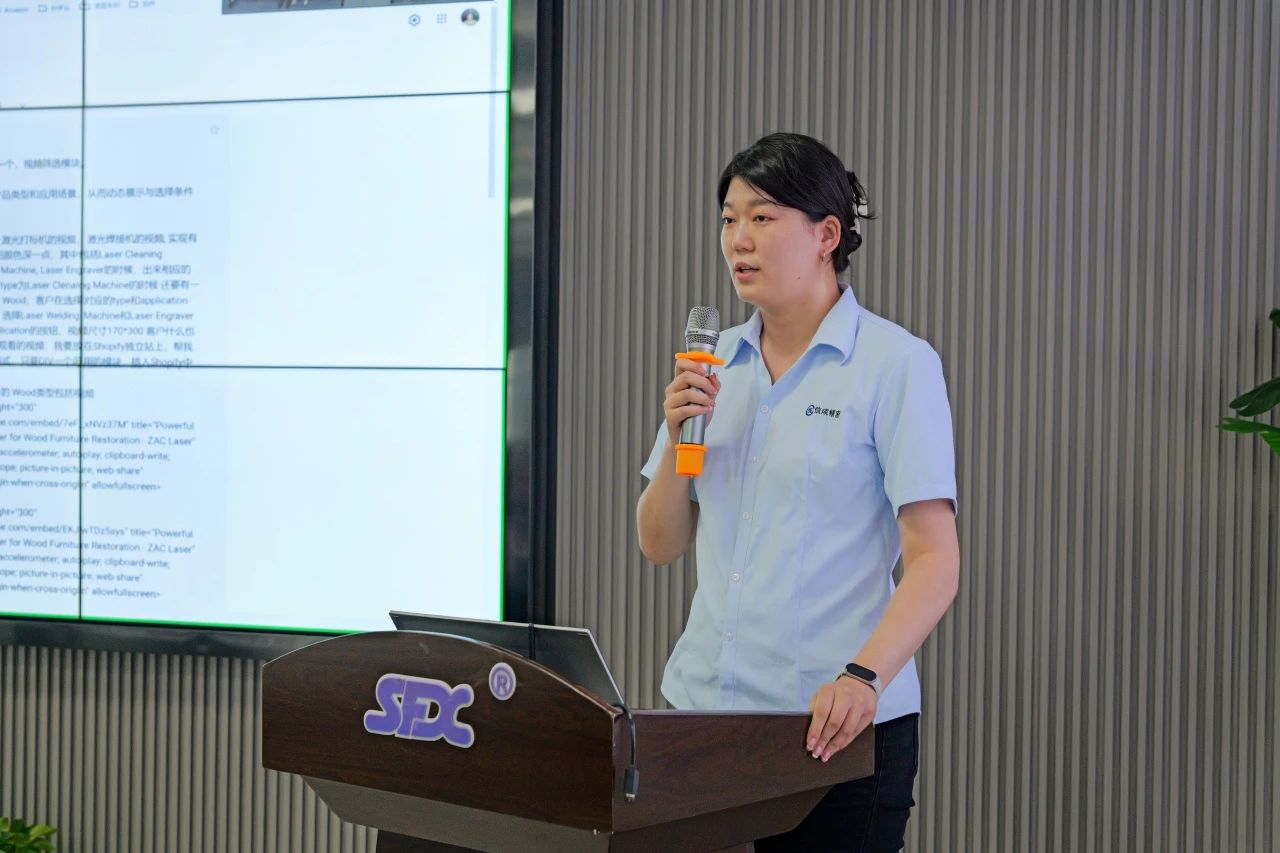 各部門(mén)負(fù)責(zé)人上臺(tái)按要求抽簽決定匯報(bào)次序。本次匯報(bào)部門(mén)(按上場(chǎng)次序)有:售后服務(wù)部、裝配車(chē)間、速飛信激光、行政管理中心、國(guó)內(nèi)銷(xiāo)售部、品牌運(yùn)營(yíng)部、研發(fā)中心、國(guó)際貿(mào)易部、采購(gòu)部,共9個(gè)部門(mén)。
