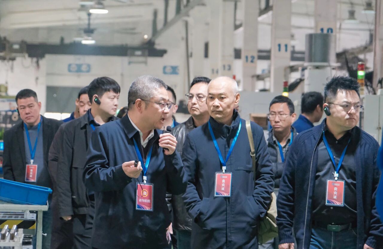 在丁董與袁總帶領下,嘉賓們分為紅、藍兩隊,有序參觀了公司銑加工車間、車床刀座柔性生產線、裝配車間機電產品線、檢測檢驗中心及車加工車間。