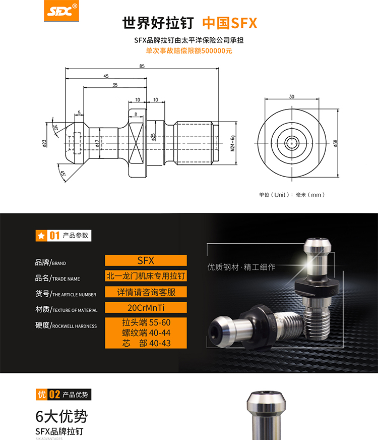 - 簡介:數(shù)控拉釘是數(shù)控機床和數(shù)控刀具的連接件,關(guān)乎人身安全、設(shè)備安全,材料要求高、尺寸要求嚴,熱處理更是疏忽不得。技術(shù)部門借助科研院所和軍工單位技術(shù)力量,不斷優(yōu)化拉釘生產(chǎn)工藝,持續(xù)投入500多萬元購置工業(yè)機器人,提高自動化程度。該產(chǎn)品量產(chǎn)后,結(jié)束了國內(nèi)多家***刀具企業(yè)各自生產(chǎn)、品質(zhì)低、成本高的局面,現(xiàn)已為國內(nèi)外多個大中型數(shù)控刀具品牌提供ODM服務(wù)。公司總經(jīng)理丁向陽先生因此榮獲中國刀協(xié)成立30周年先進個人殊榮。由于多年品質(zhì)積淀的信心,2016年開始,公司就相關(guān)產(chǎn)品向太平洋保險公司巨額投保。
